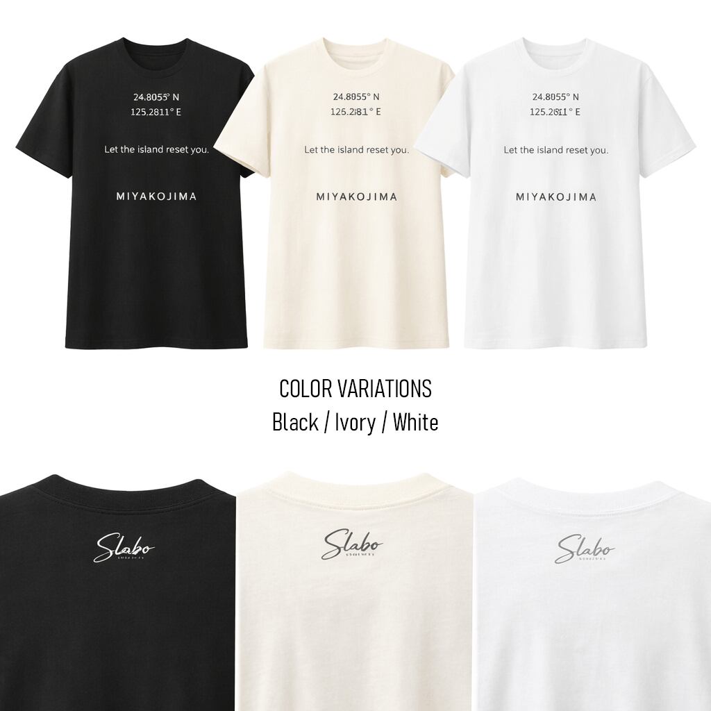 宮古島 Coordinates Tシャツ|Let the island reset you.|SLabo(アイボリー)